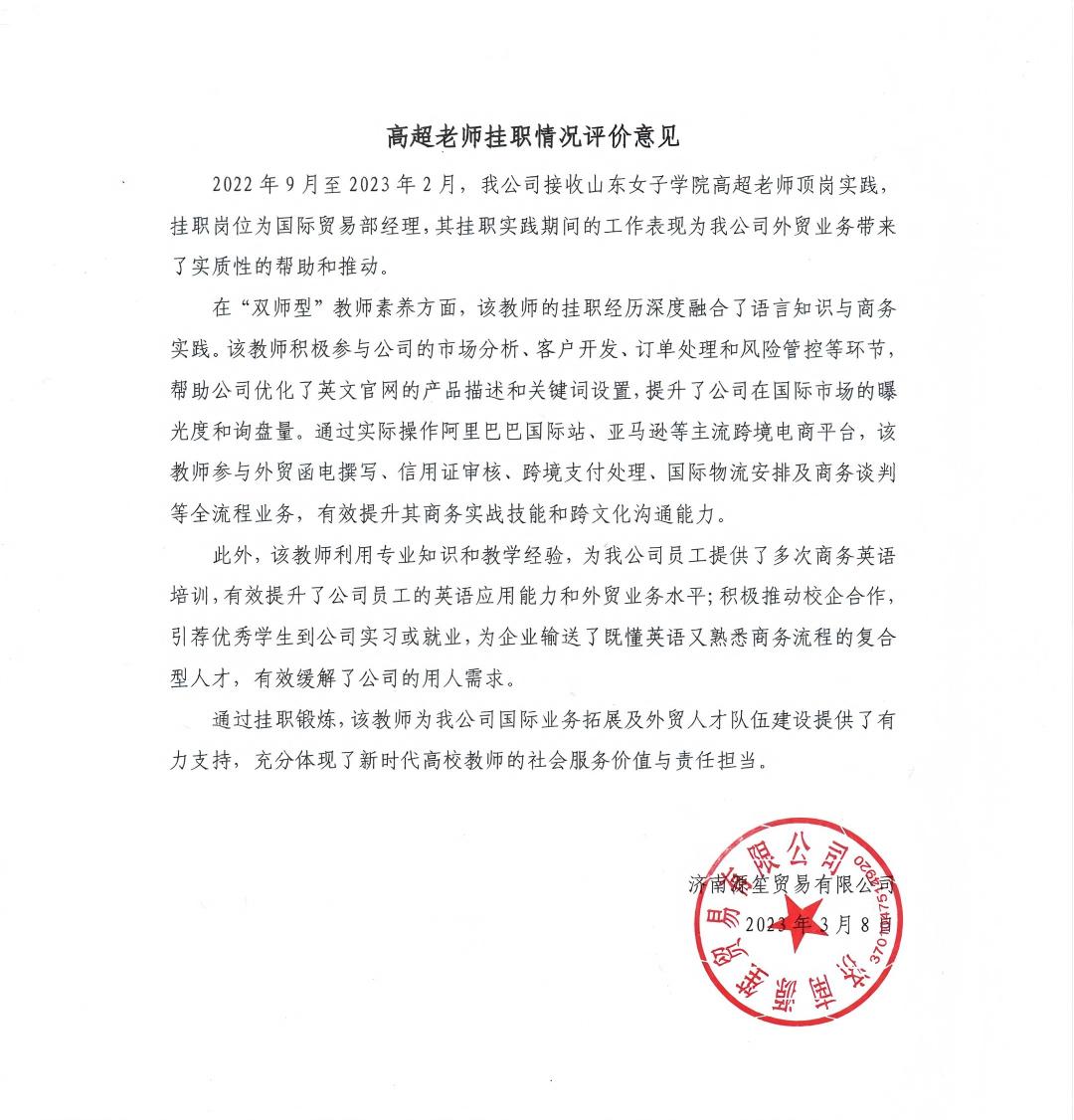 4.高超老师挂职济南源笙贸易有限公司国际贸易部经理