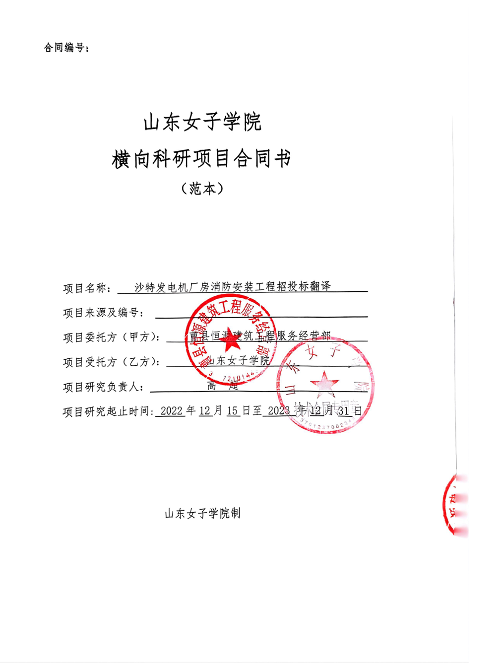 12.横向课题:沙特发电机厂房消防安装工程招投标翻译