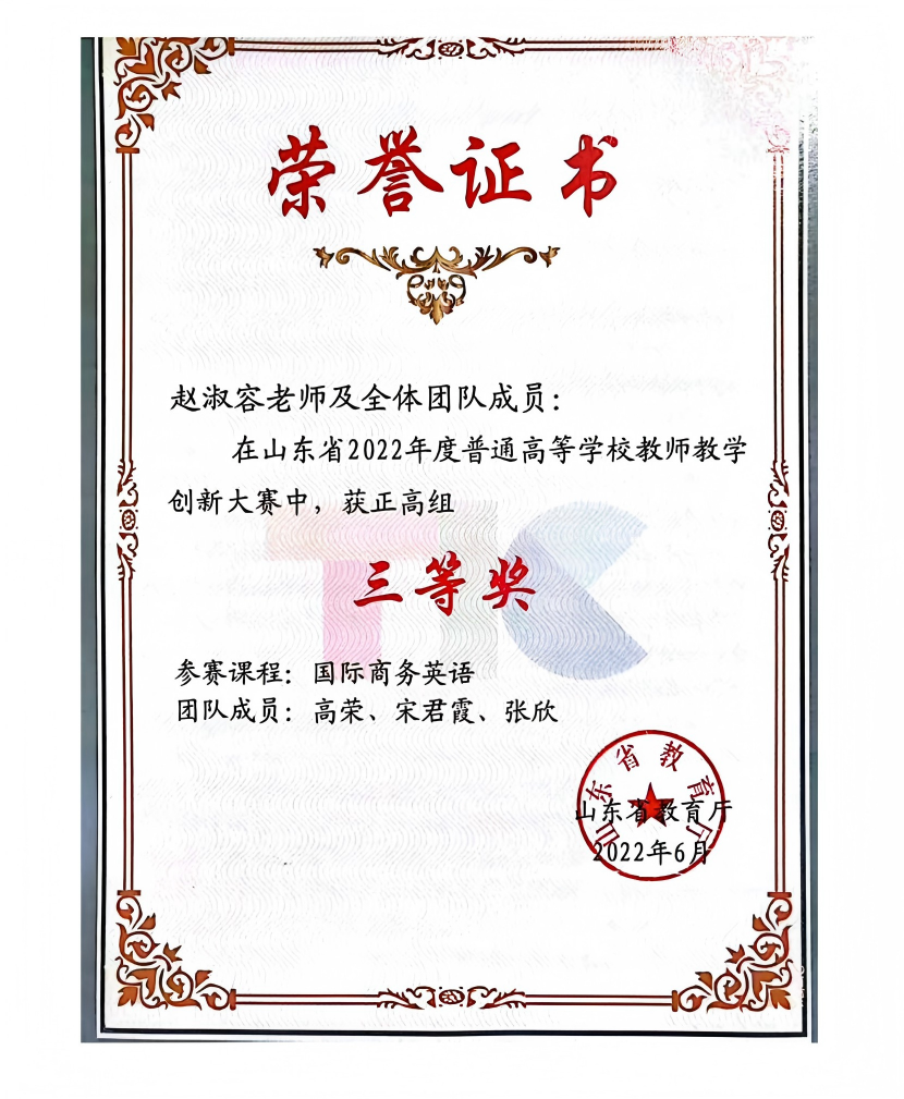 4.赵淑容老师团队获2022年度山东省普通高等学校教师教学创新大赛正高组三等奖