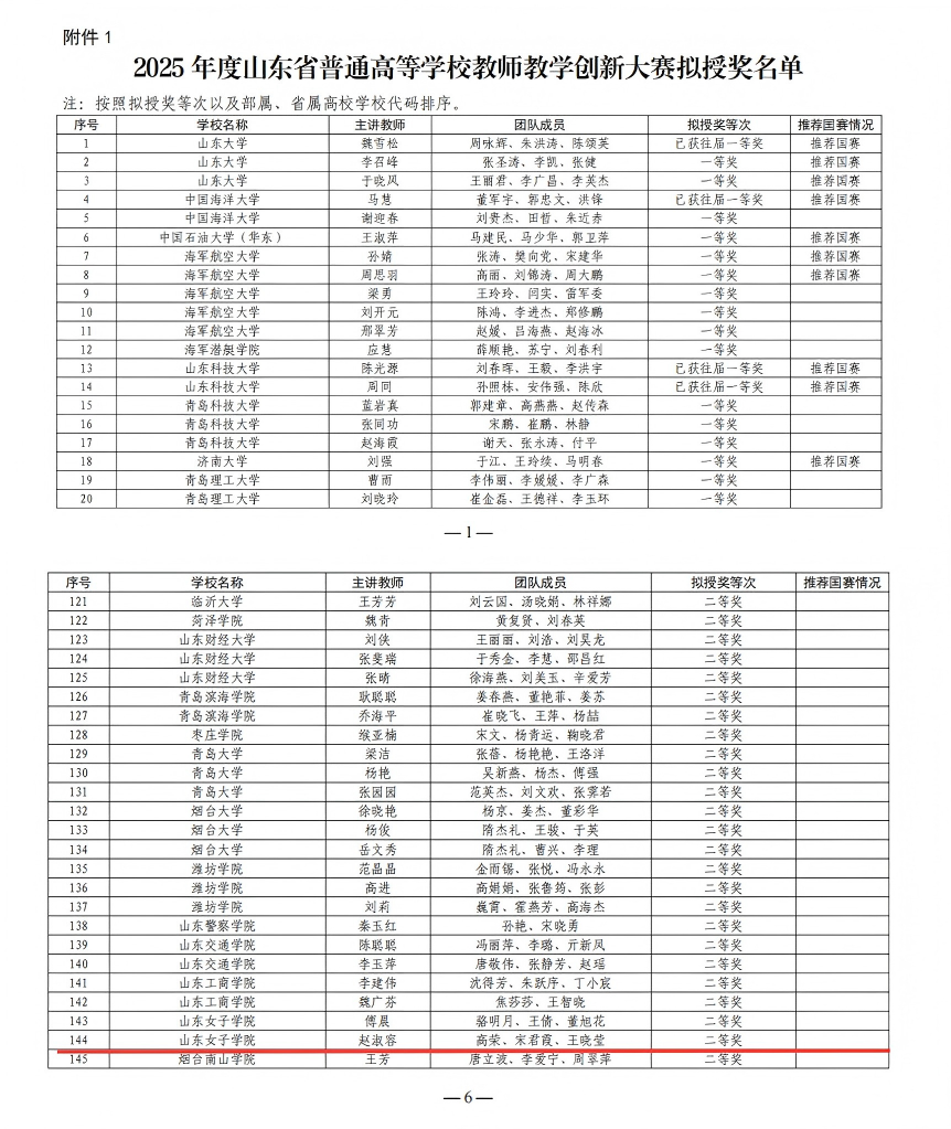 3.赵淑容老师团队获2025年度山东省普通高等学校教师教学创新大赛正高组二等奖
