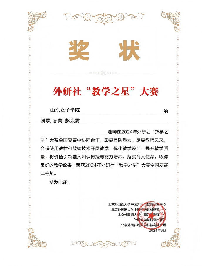 7.刘雯、高荣、赵永霞三位老师获2024年外研社“教学之星”大赛全国复赛二等奖