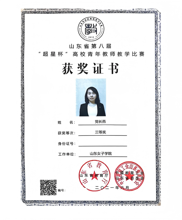 2.党长燕老师获山东省高校青年教师教学比赛三等奖