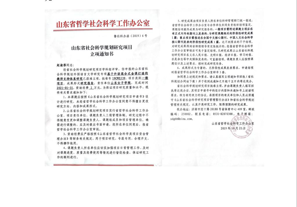 3.山东省社科规划课题:基于外语混合式金课打造的教师支持体系研究