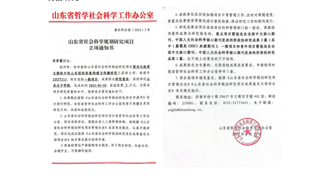 5.山东省社科规划课题:国内主流英文媒体中的山东国际形象构建与传播研究