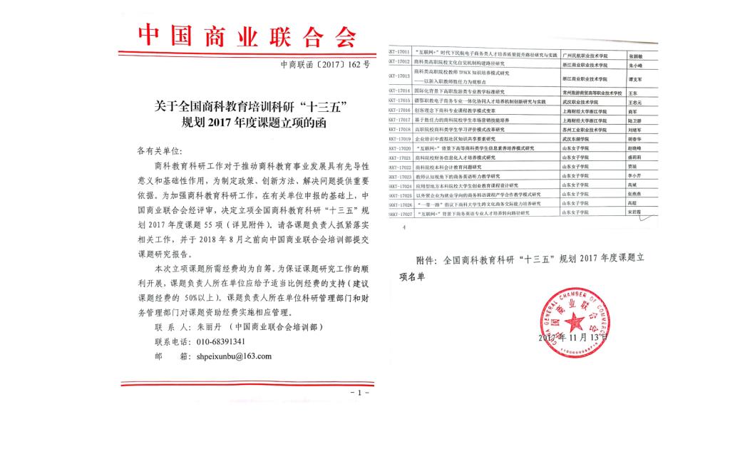 6.全国商科教育科研“十三五”规划项目:“互联网+背景下商务英语专业人才培养转向路径研究——以跨境电子商务方向为例