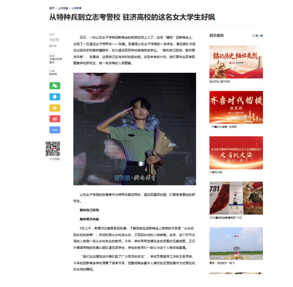 5.《济南时报》、大众网等媒体对张曼参军事迹的报道